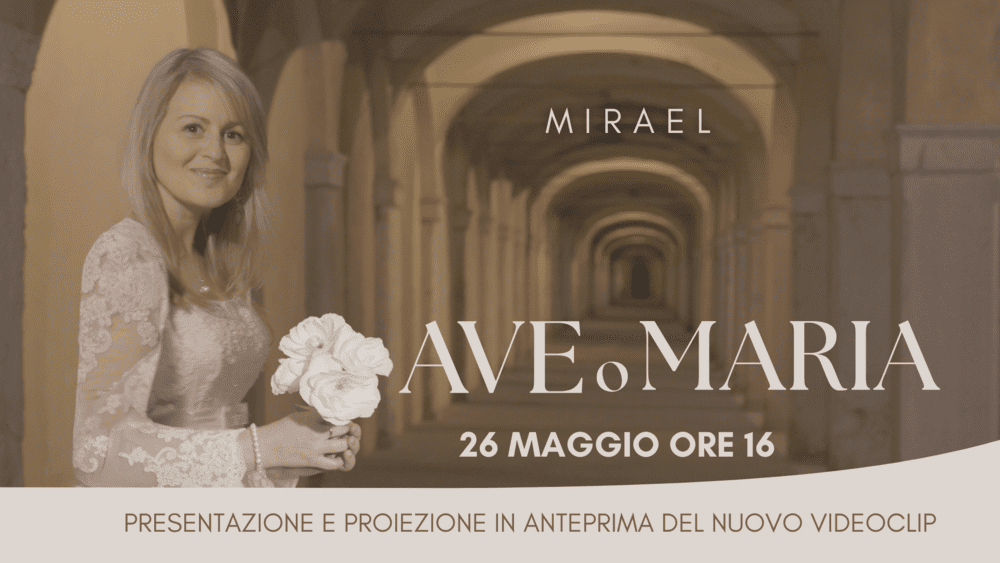 DOMENICA 26 MAGGIO alle ore 16 presso la Sala Polifunzionale del Santuario Arcidiocesano di Santa Maria in Aula Regia (L.go P. Cassiano da Comacchio 1) la cantautrice ferrarese MIRAEL (mirael.it – @miraelofficial) presenterà in anteprima “AVE O MARIA” nuovo brano con videoclip che uscirà VENERDÌ 31 MAGGIO alle ore 9 sul canale You Tube @MIRAEL e sui digital stores.